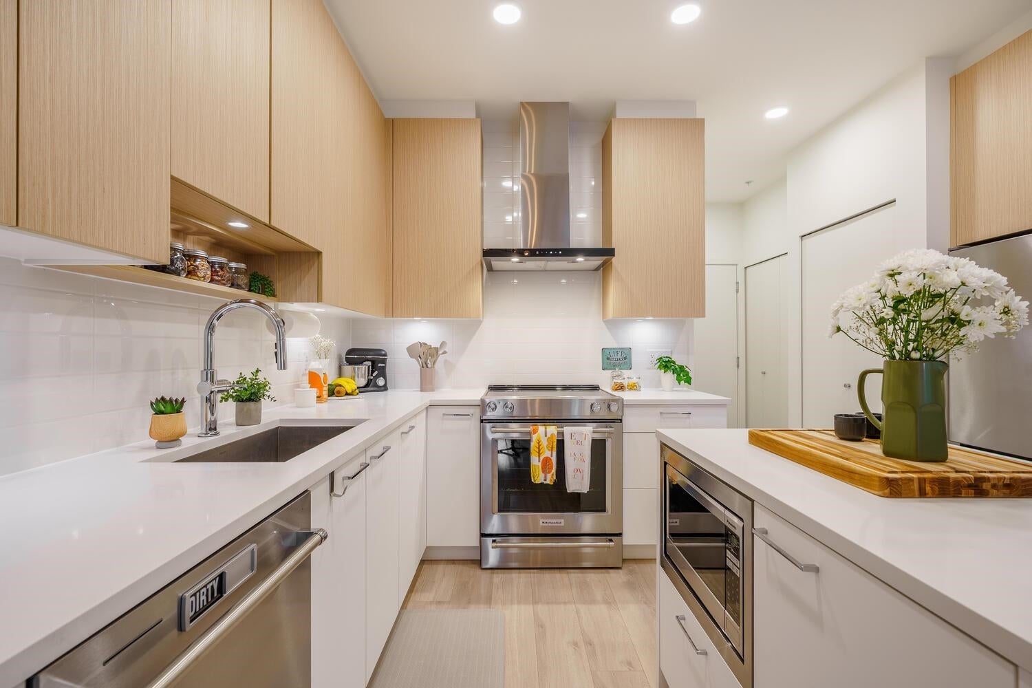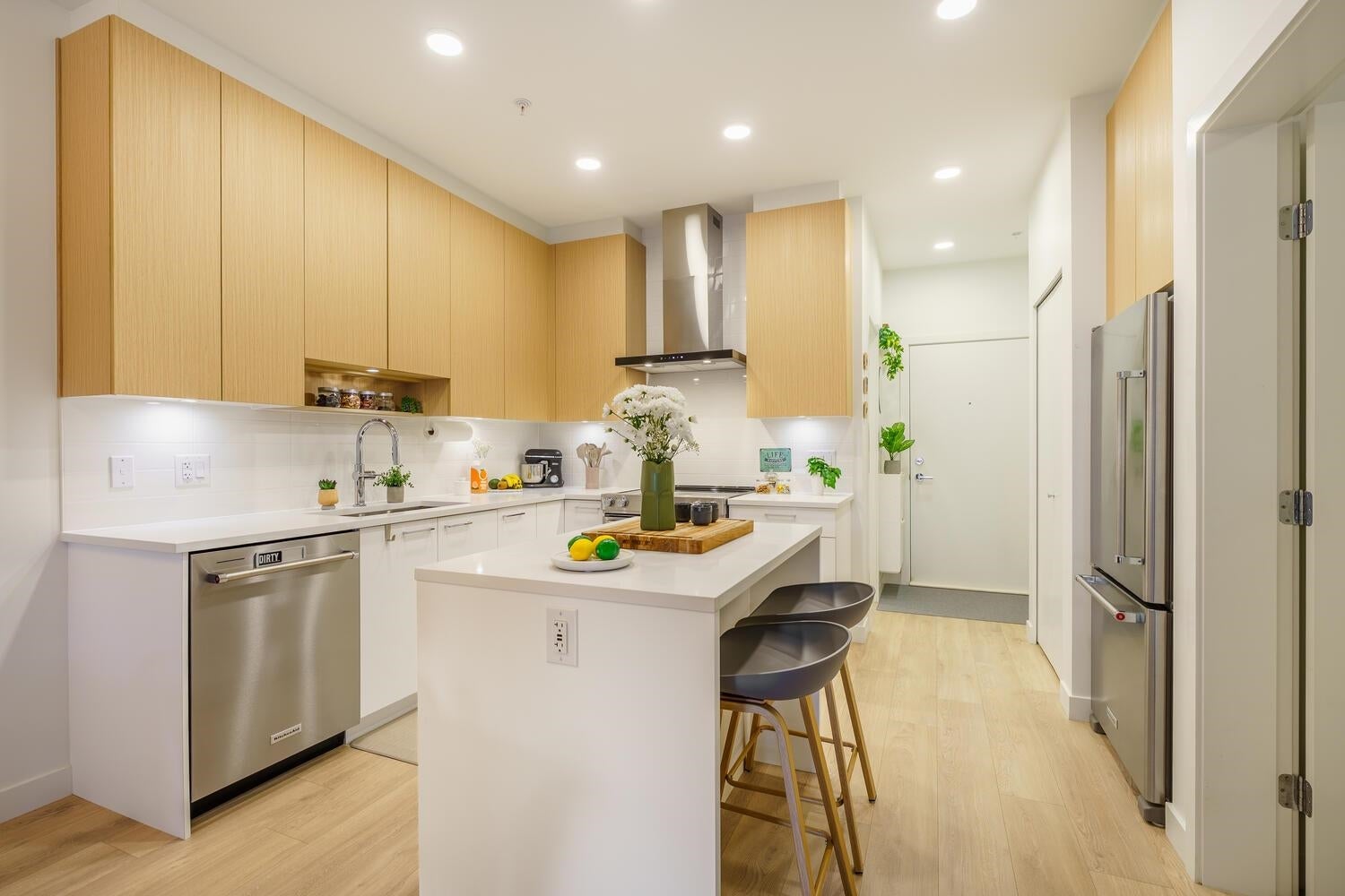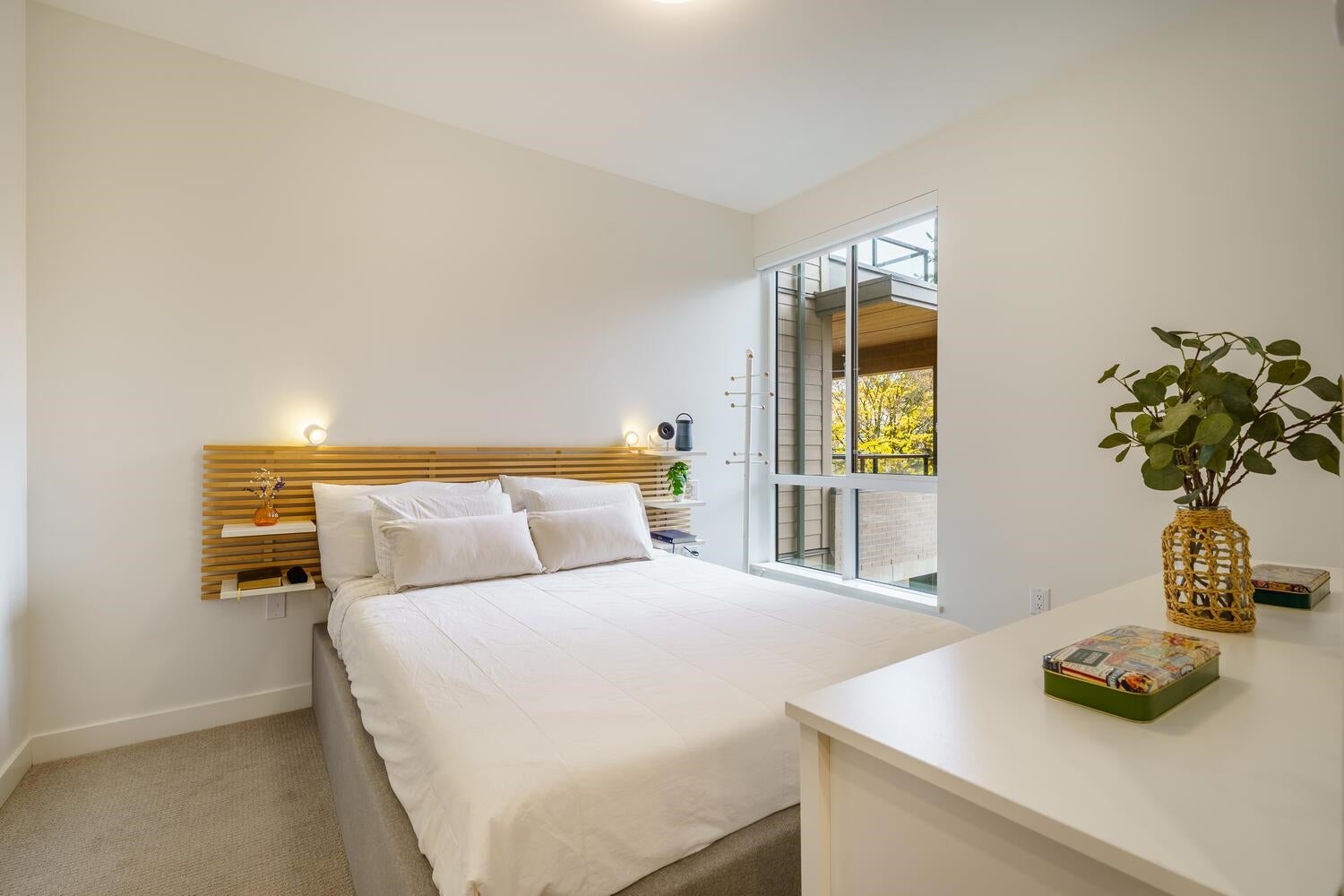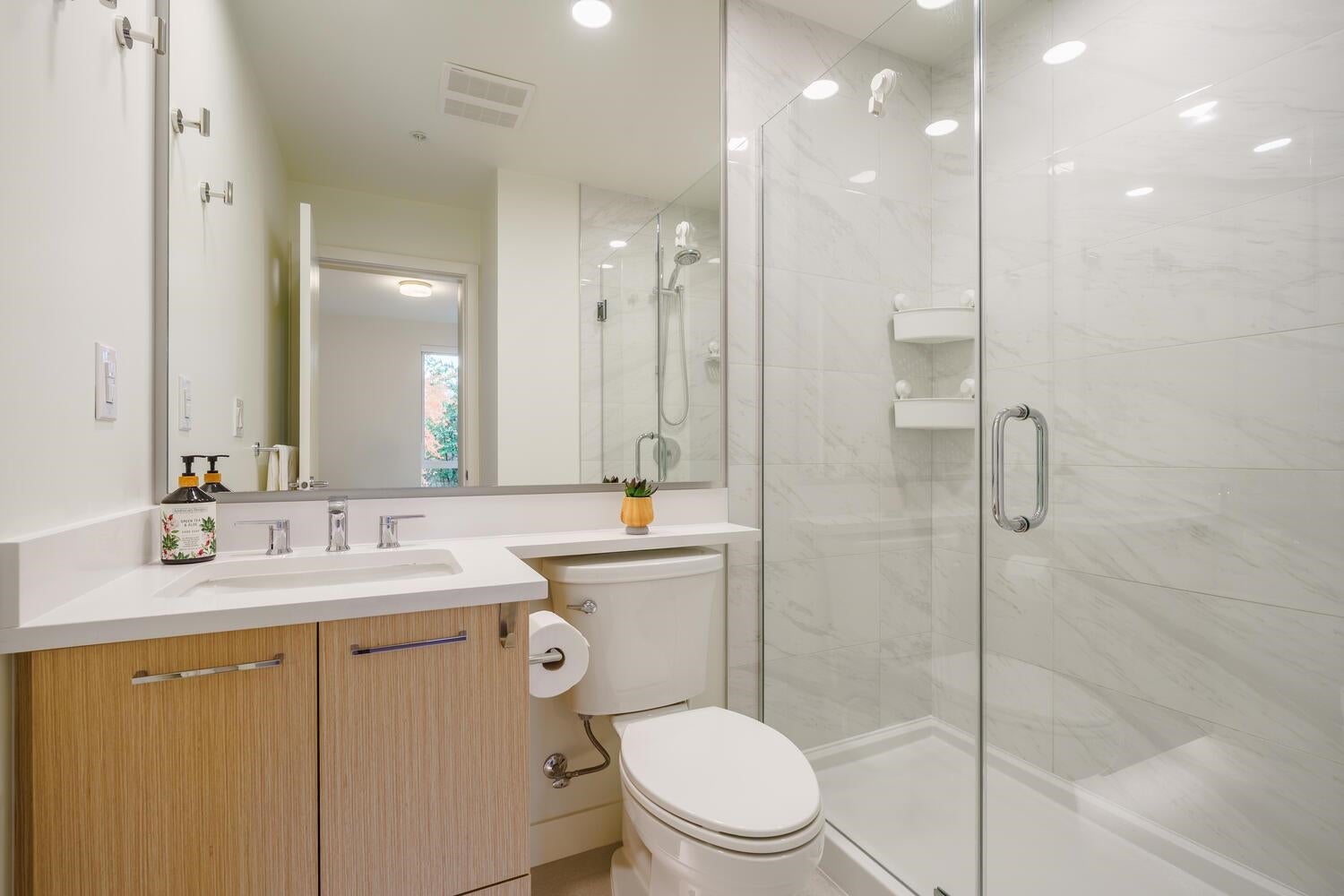 Welcome to CEDAR CREEK - a signature collection by Ledingham McAllister. This elegant, nearly new 2-bdrm, 2-bath condo offers 783 sqft of thoughtfully designed living. Enjoy a modern open-concept layout featuring a stylish kitchen with full-size s/s appliances, quartz counters and 9-ft ceilings. Expansive windows fill the home with natural light, while the generous SE-facing balcony overlooks a tranquil treed setting. 1 parking and 1 storage locker. Pets and rentals welcome. Residents also enjoy premium amenities such as a fitness centre, guest suite, children’s playground, car wash station, and community garden. Ideally situated just minutes from Edmonds SkyTrain Station, Highgate Village, top-rated schools, and beautiful parks.
