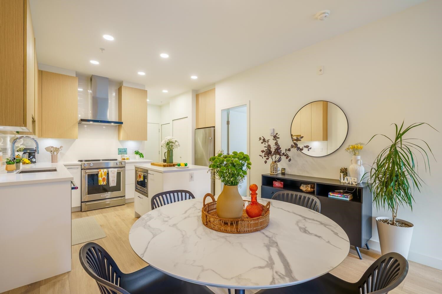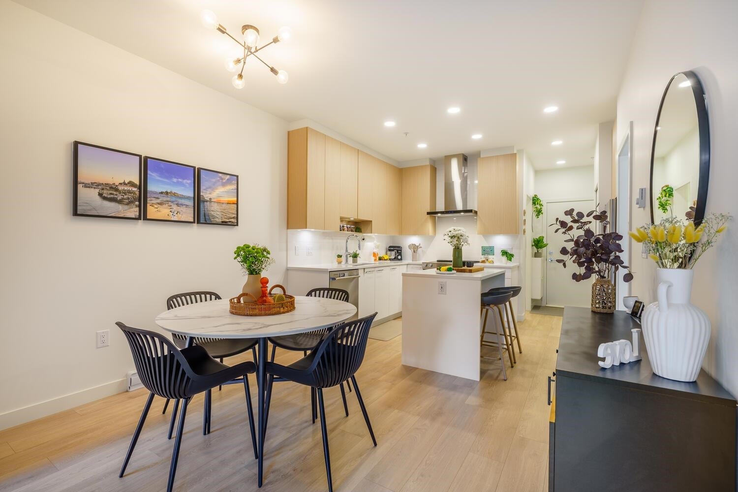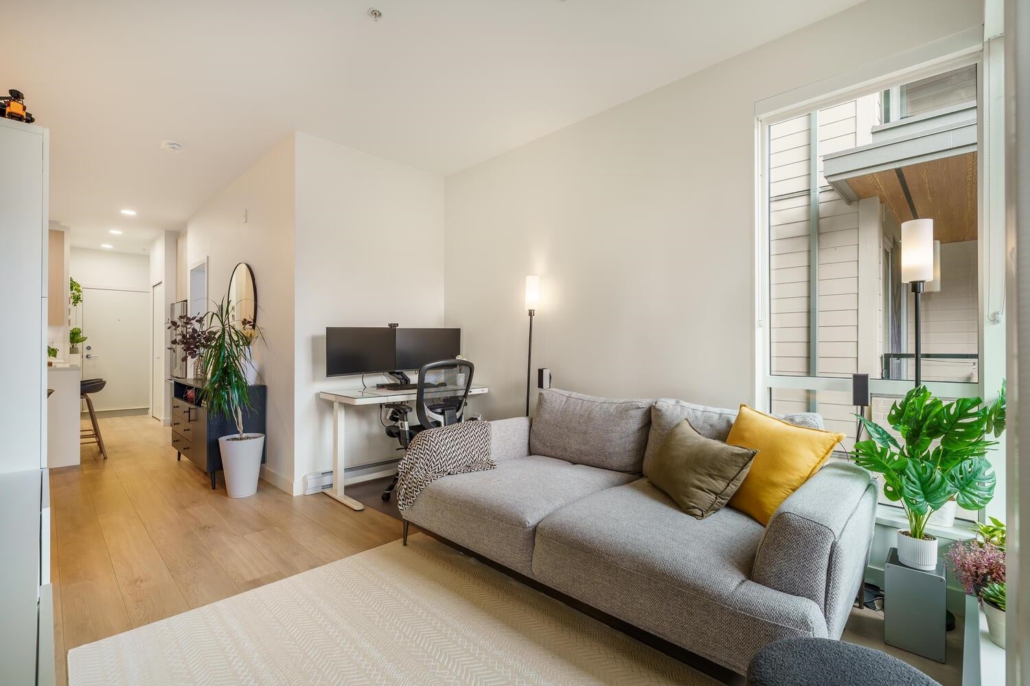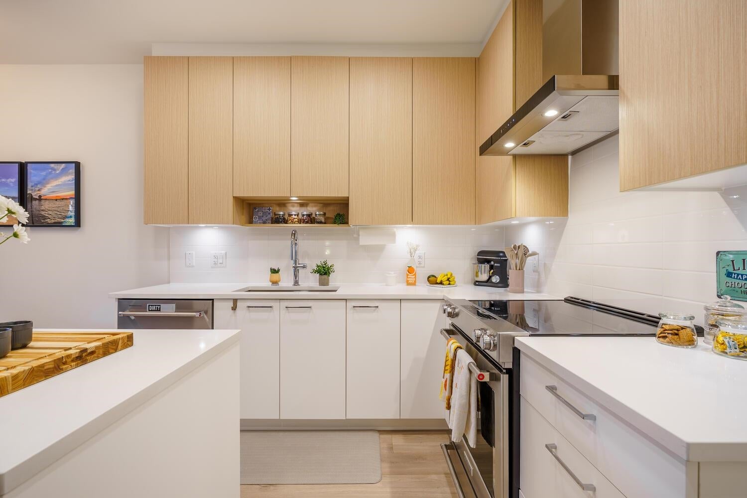 Welcome to CEDAR CREEK - a signature collection by Ledingham McAllister. This elegant, nearly new 2-bdrm, 2-bath condo offers 783 sqft of thoughtfully designed living. Enjoy a modern open-concept layout featuring a stylish kitchen with full-size s/s appliances, quartz counters and 9-ft ceilings. Expansive windows fill the home with natural light, while the generous SE-facing balcony overlooks a tranquil treed setting. 1 parking and 1 storage locker. Pets and rentals welcome. Residents also enjoy premium amenities such as a fitness centre, guest suite, children’s playground, car wash station, and community garden. Ideally situated just minutes from Edmonds SkyTrain Station, Highgate Village, top-rated schools, and beautiful parks.